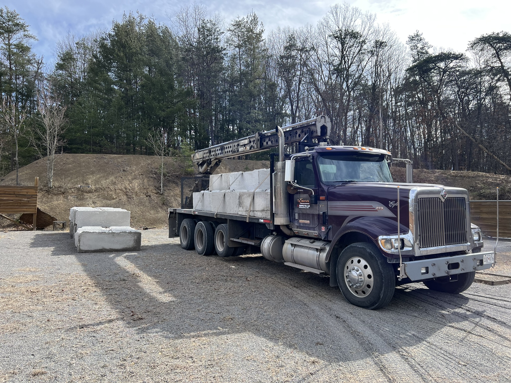 We have received 48 blocks that will be used to replace two walls. Here are a couple of photos of the blocks being delivered.
